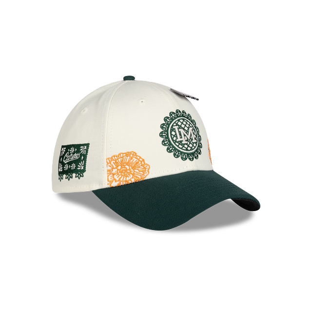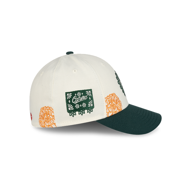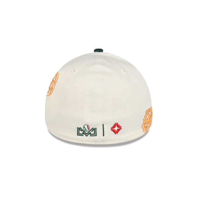 Esta gorra curva New Era 39THIRTY de Cañeros de Los Mochis de la colección LAMP Día de Muertos presenta un diseño inspirado en la artesanía del papel picado con el logotipo de los Cañeros bordado en los paneles frontales, detalles de flores de cempasúchil en la corona, el logo de la LAMP al reverso, un pin en forma de papel picado y el flag de New Era bordado del lado izquierdo. Cómprala ya.