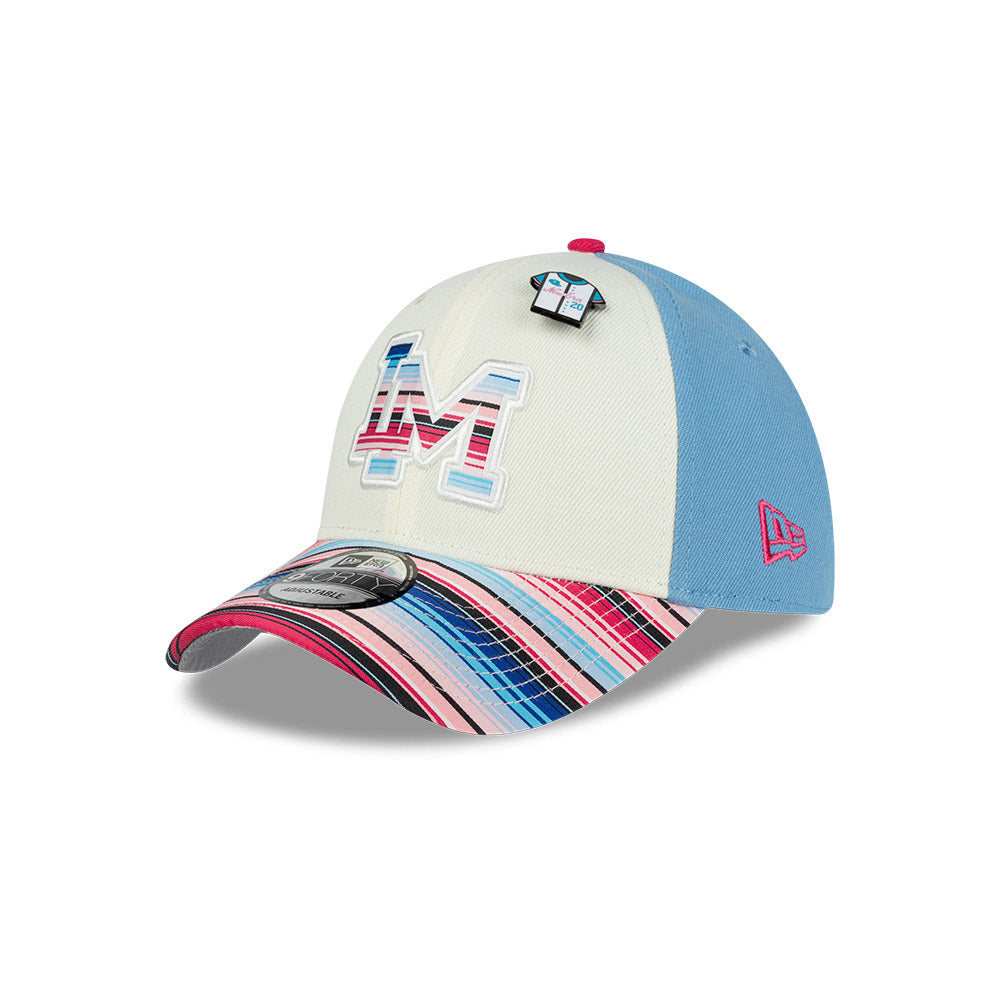 Esta gorra curva New Era 9FORTY de Cañeros de Los Mochis de la colección LAMP Sarape presenta el logotipo de los Cañeros bordado en los paneles frontales, el visor con un diseño inspirado en los colores y patrones tradicionales del sarape, un pin en forma de Jersey y el flag de New Era bordado del lado izquierdo. Luce con estilo y cómprala ya.