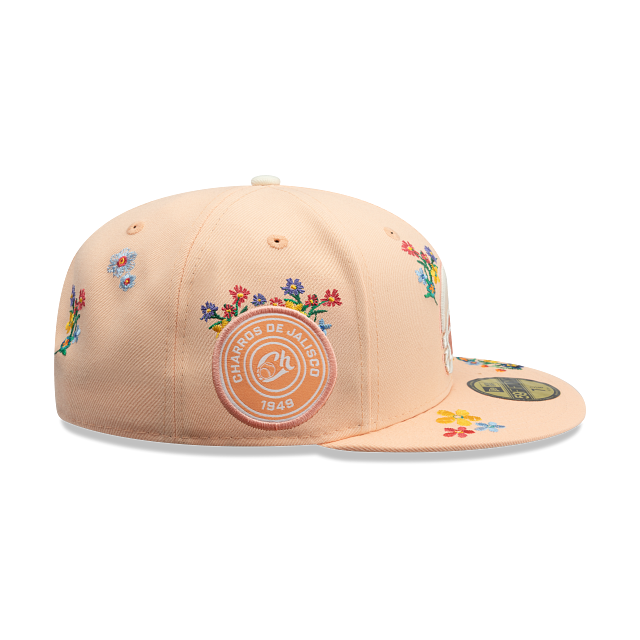 Esta gorra plana New Era 59FIFTY de Charros de Jalisco de la colección LAMP Bloom presenta un diseño floral con el logotipo de los Charros bordado en los paneles frontales, un parche representativo del equipo del lado derecho, el nombre del equipo al reverso y el flag de New Era bordado del lado izquierdo. Cómprala ya.