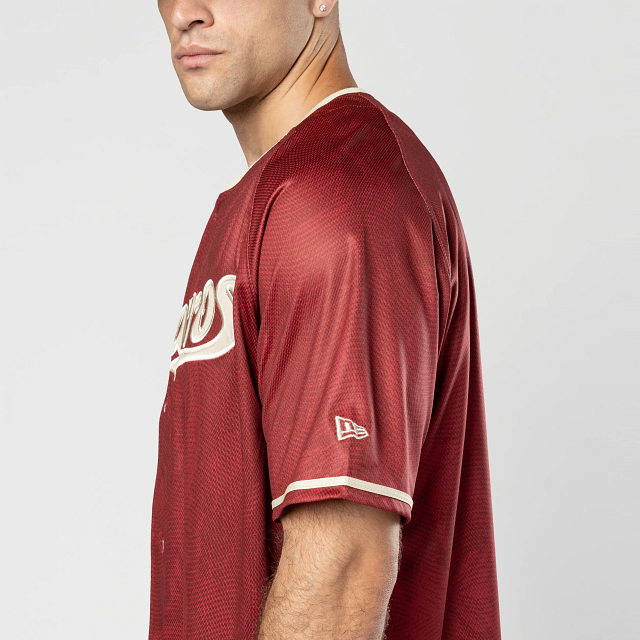 Este Jersey New Era de Charros de Jalisco de la colección LAMP Jerseys presenta un diseño en color rojo con el nombre de los Charros en la parte frontal, el logo de la LAMP en la parte de atrás del cuello, el logo del equipo en la manga derecha y el flag de New Era bordado en la manga izquierda. Cómprala ya.
