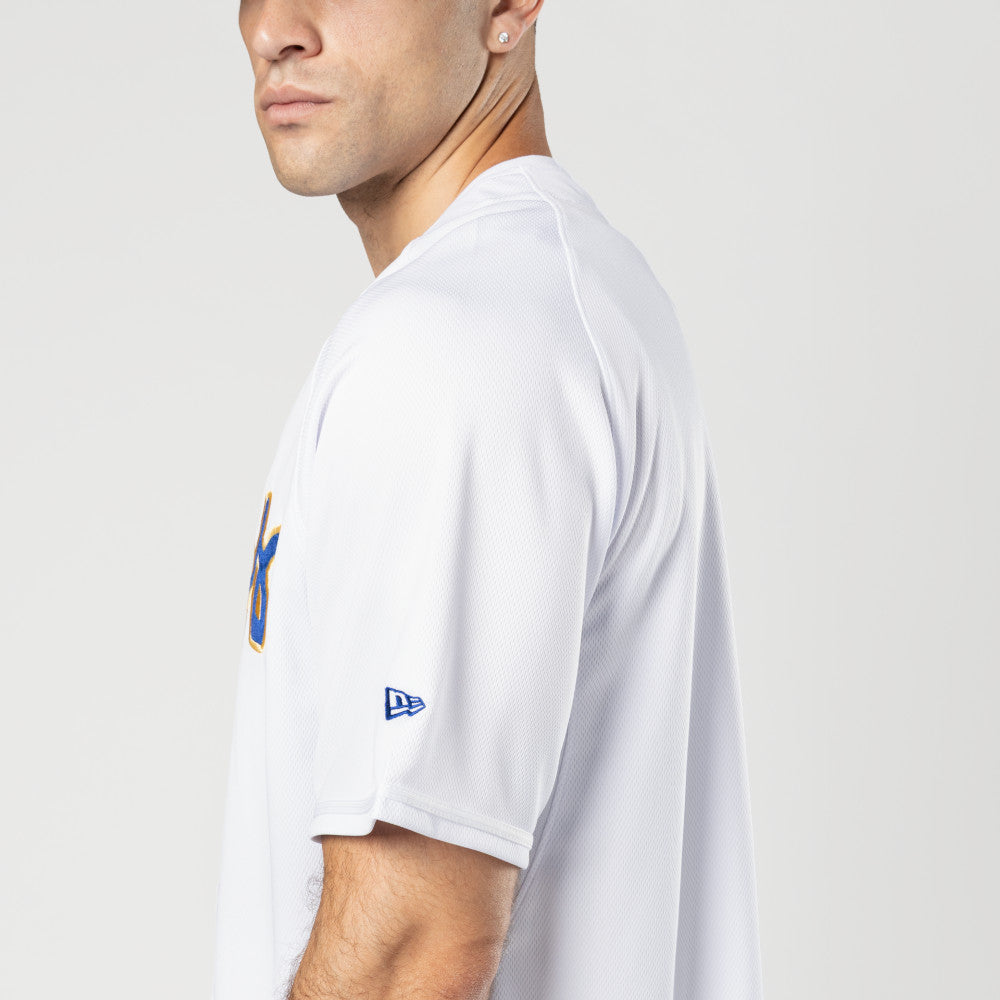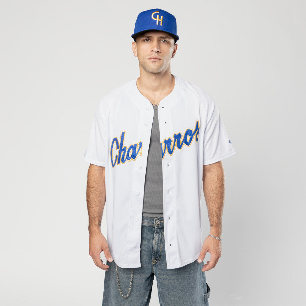 Este Jersey New Era de Charros de Jalisco de la colección LAMP Jerseys presenta un diseño en color blanco con el nombre de los Charros en la parte frontal, el logo del equipo en la manga derecha, logo de la LAMP en la parte de atrás del cuello y el flag de New Era bordado en la manga izquierda. Cómprala ya.