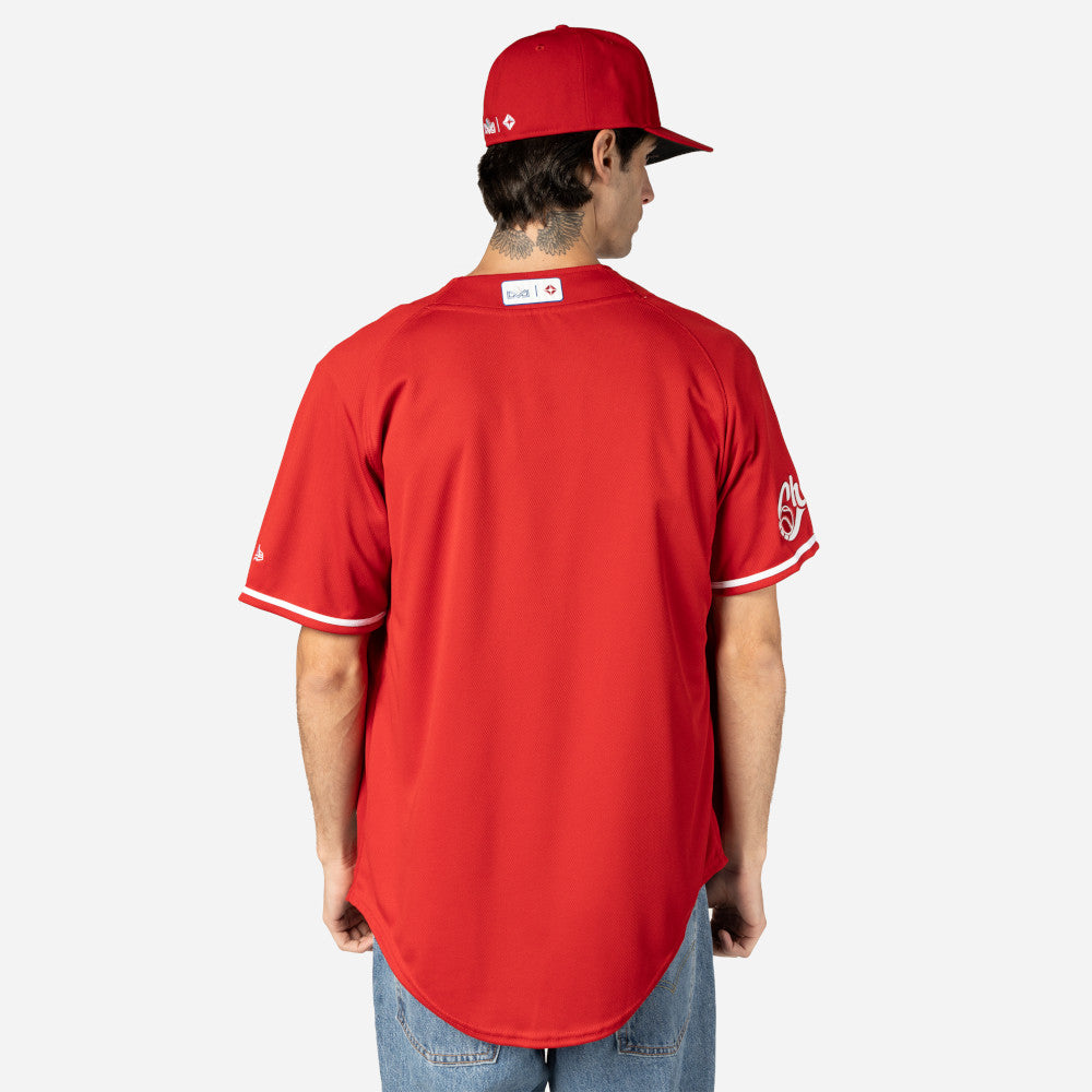 Este Jersey New Era de Charros de Jalisco de la colección LAMP Jerseys 2024 presenta un diseño con el nombre de los Charros en la parte frontal, el logotipo del equipo en la manga derecha, el logo de la LAMP en la parte de atrás del cuello y el flag de New Era bordado en la manga izquierda. Cómpralo ya.