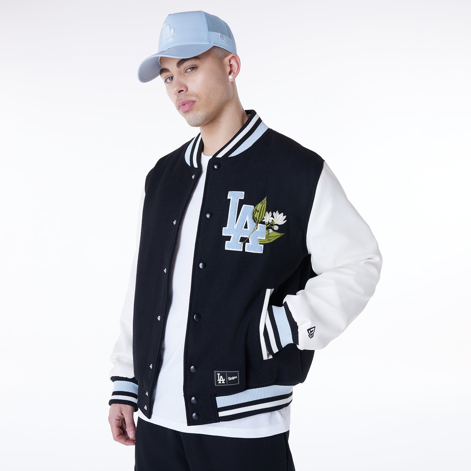 Esta Chamarra Varsity New Era de Los Angeles Dodgers de la colección MLB Floral Collection presenta el logotipo de los Dodgers con bordados florales en la parte frontal izquierda, el nombre del equipo con detalles florales en la parte de atrás y el flag de New Era bordado en la manga izquierda. Cómprala ya.