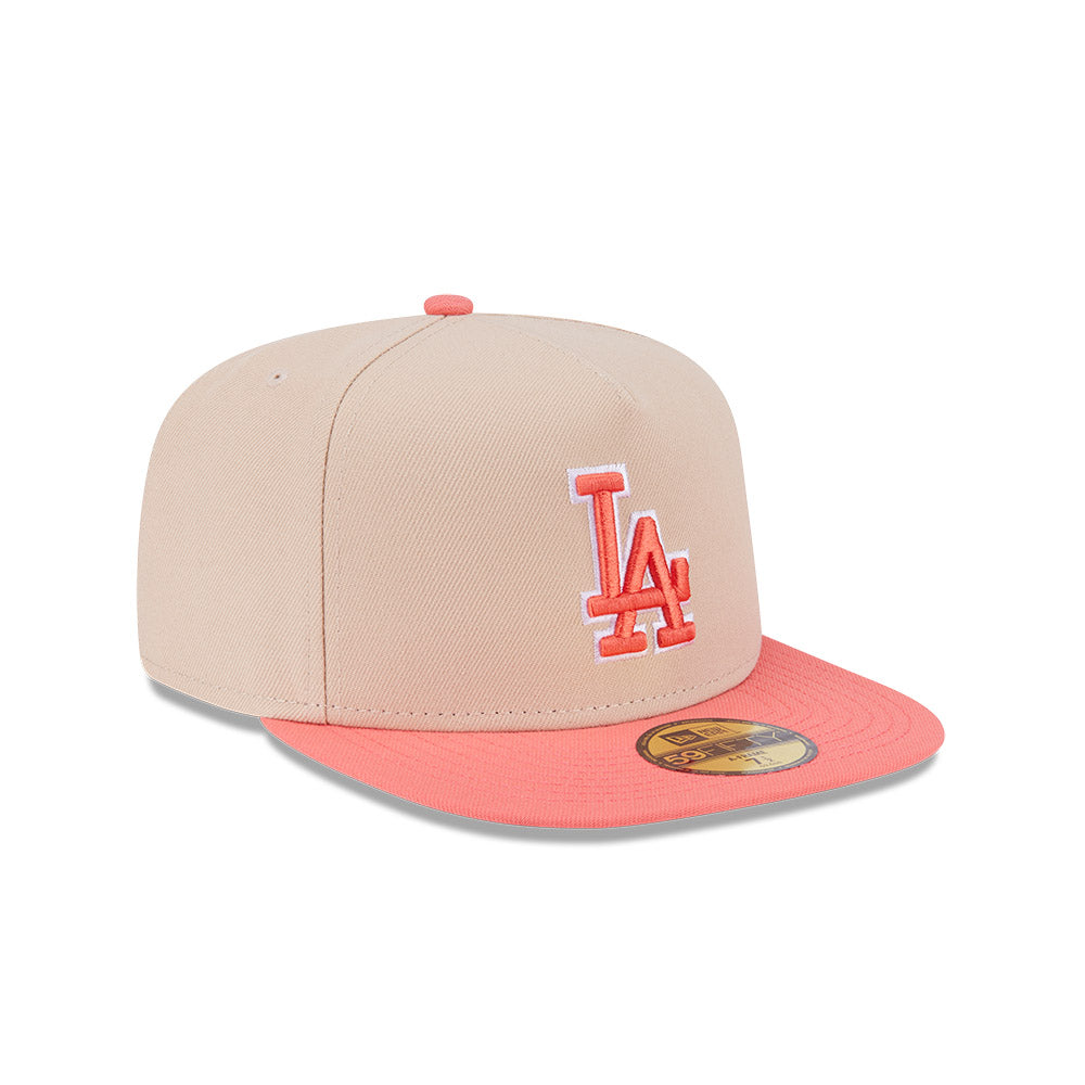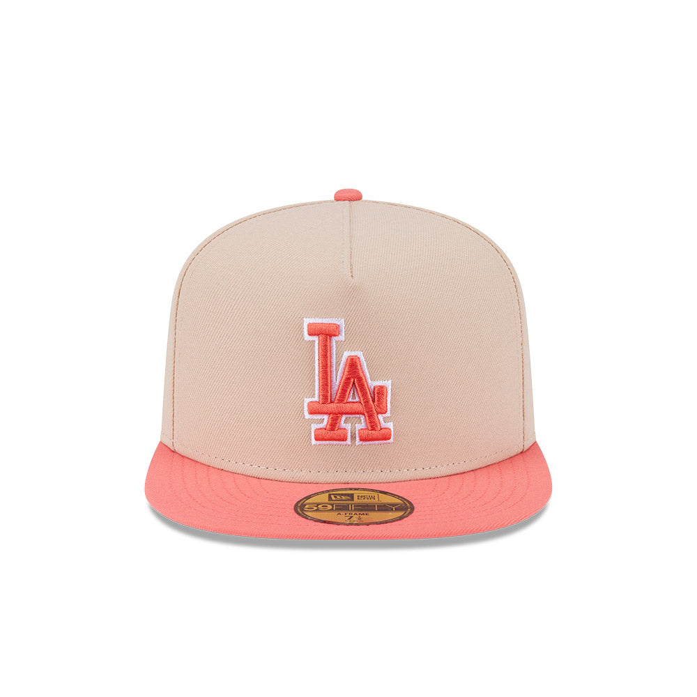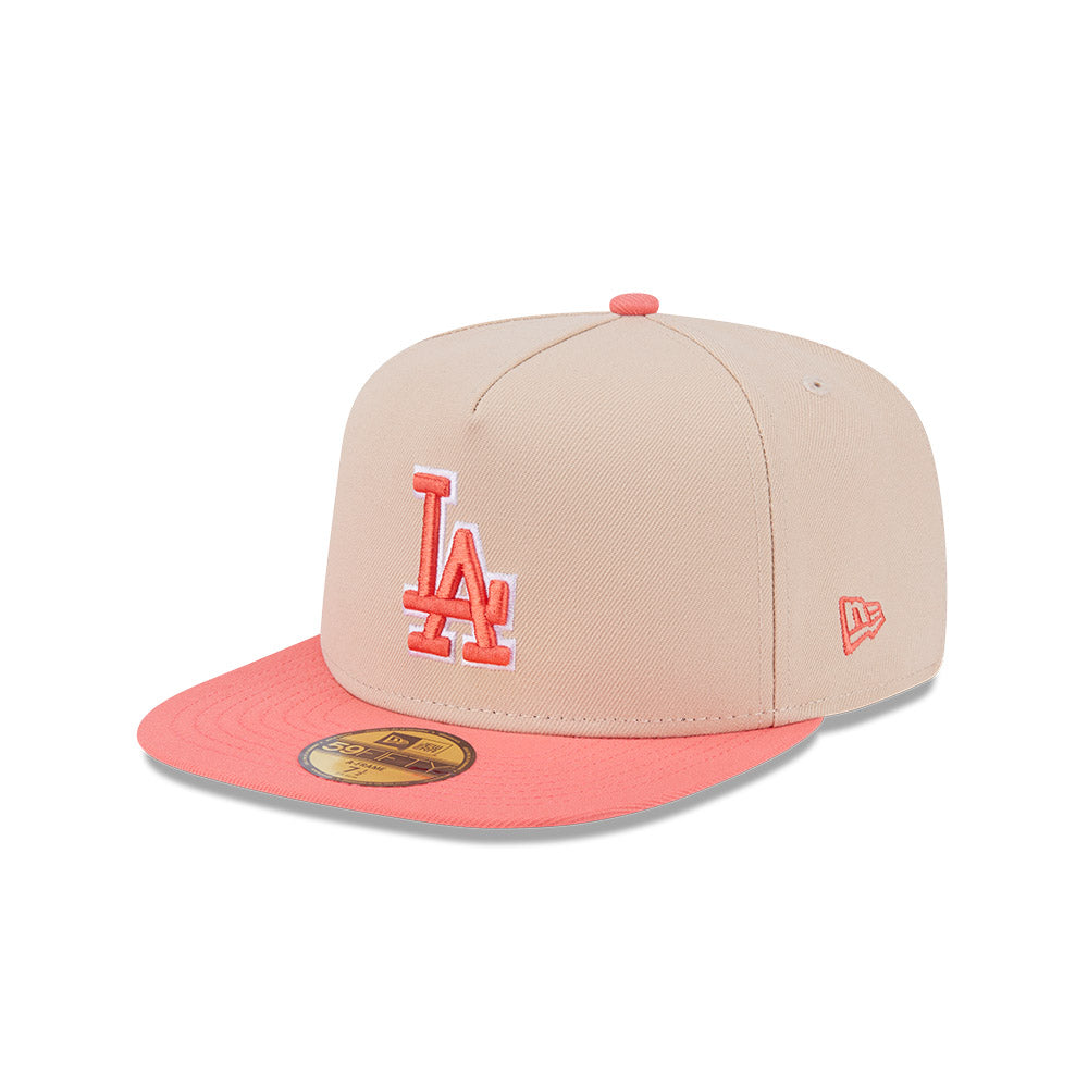 Esta gorra plana New Era 59FIFTY A-Frame de Los Angeles Dodgers de la colección MLB Color Pack presenta la corona en color beige con el logotipo de los Dodgers bordado en los paneles frontales, el MLB Batterman al reverso y el flag de New Era bordado del lado izquierdo. Cómprala ya.