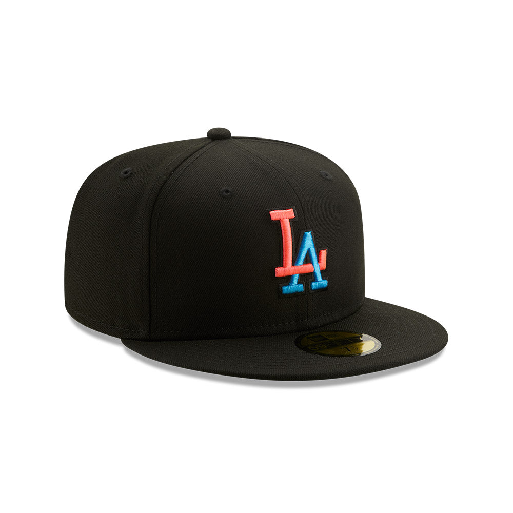 Esta gorra plana New Era 59FIFTY de Los Angeles Dodgers de la colección MLB Coral Fanatic presenta un diseño en color negro con el logotipo de los Dodgers bordado en color azul y coral en los paneles frontales, el MLB Batterman bordado al reverso y el flag de New Era bordado del lado izquierdo. Cómprala ya.