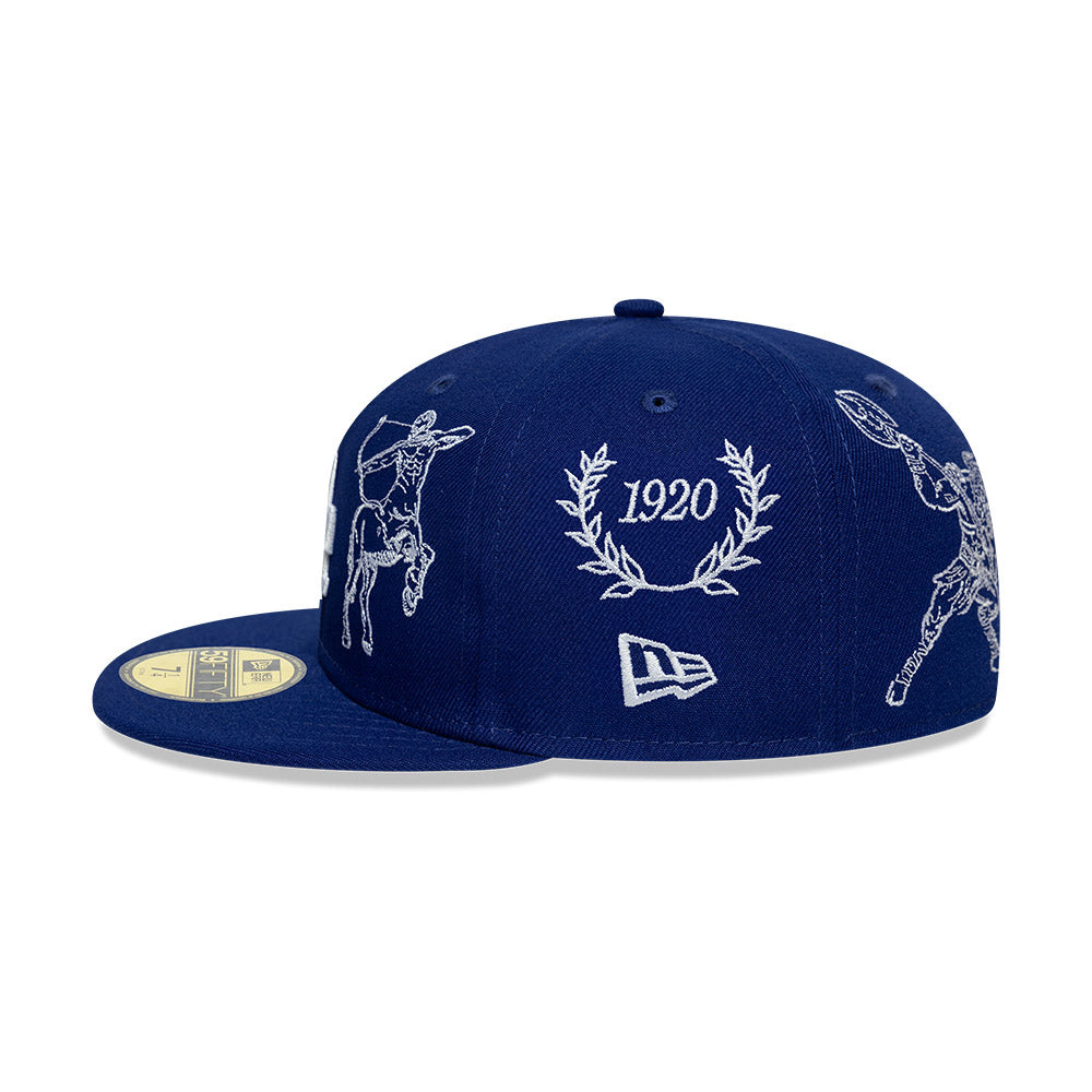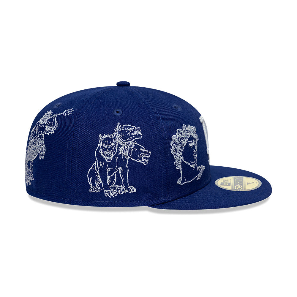 Esta gorra plana New Era 59FIFTY de Los Angeles Dodgers de la colección MLB Mythical presenta el logotipo de los Dodgers junto con Apolo y un Centauro bordados en los paneles frontales, un Cerbero bordado del lado derecho, Poseidón y un Minotauro junto con el MLB Batterman al reverso y el flag de New Era bordado del lado izquierdo. Cómprala ya.
