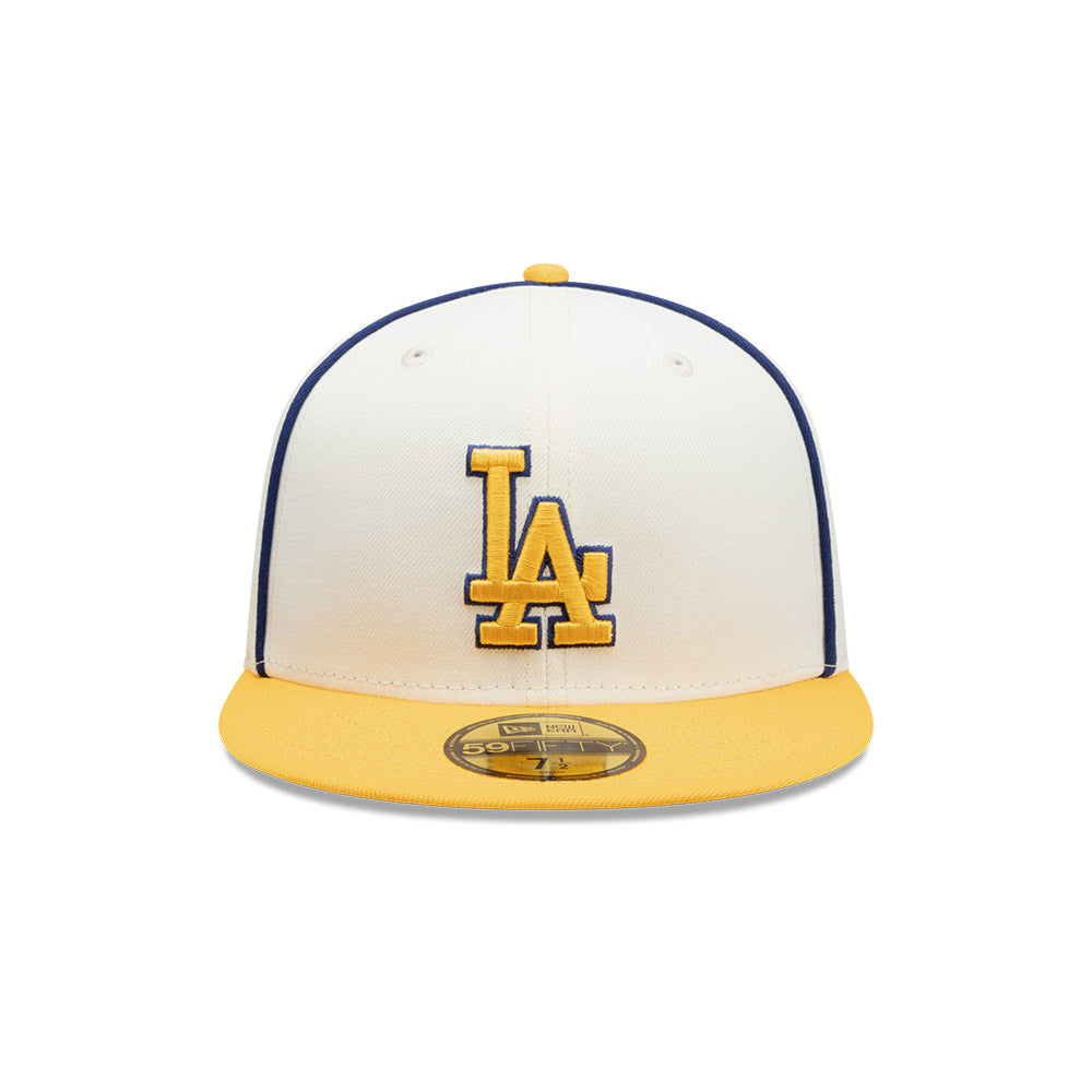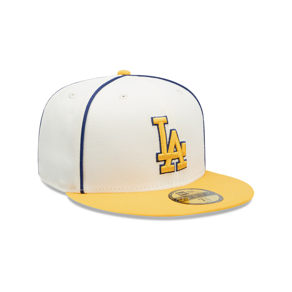 Esta gorra plana New Era 59FIFTY de Los Angeles Dodgers de la colección MLB Piping presenta un diseño bicolor con los clásicos ribetes en la corona, el logotipo de los Dodgers bordado en los paneles frontales, el MLB Batterman en la parte de atrás y el flag de New Era bordado del lado izquierdo. Cómprala ya.
