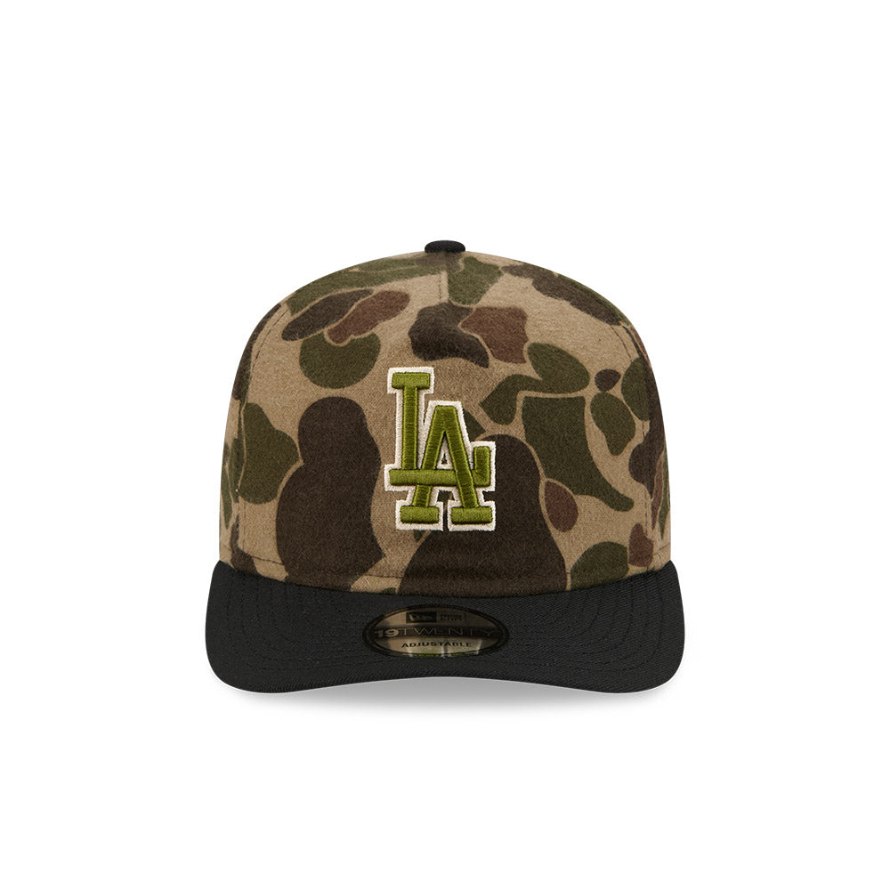 Esta gorra precurveada New Era 19TWENTY de Los Angeles Dodgers de la colección MLB Wool Woodland Camo presenta un diseño de camuflaje con el logotipo de los Dodgers bordado en los paneles frontales y el flag de New Era bordado del lado izquierdo. Cómprala ya.