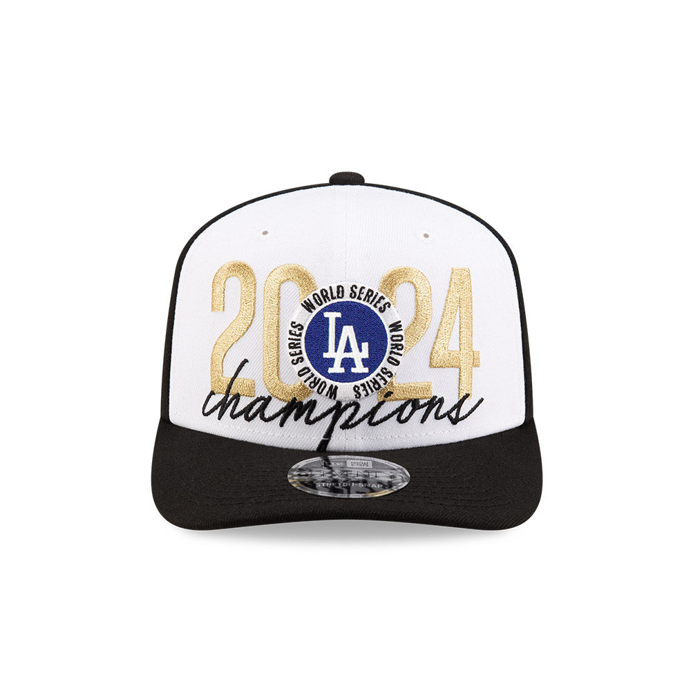 Celebra al campeón de la MLB World Series 2024 con esta gorra curva New Era 9SEVENTY de Los Angeles Dodgers que presenta un diseño con el logotipo de los Dodgers bordado en los paneles frontales junto con la inscripción de Champions 2024, el Commissioner's Trophy del lado derecho, el MLB Batterman al reverso y el flag de New Era bordado del lado izquierdo. Cómprala ya.