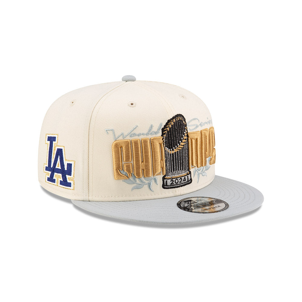 Celebra al campeón de la MLB World Series 2024 con esta gorra plana New Era 9FIFTY de Los Angeles Dodgers que presenta un diseño con el Commissioner's Trophy en los paneles frontales, el logotipo de los Dodgers del lado derecho y el flag de New Era bordado del lado izquierdo. Súmate a los festejos y no te pierdas este artículo de colección.