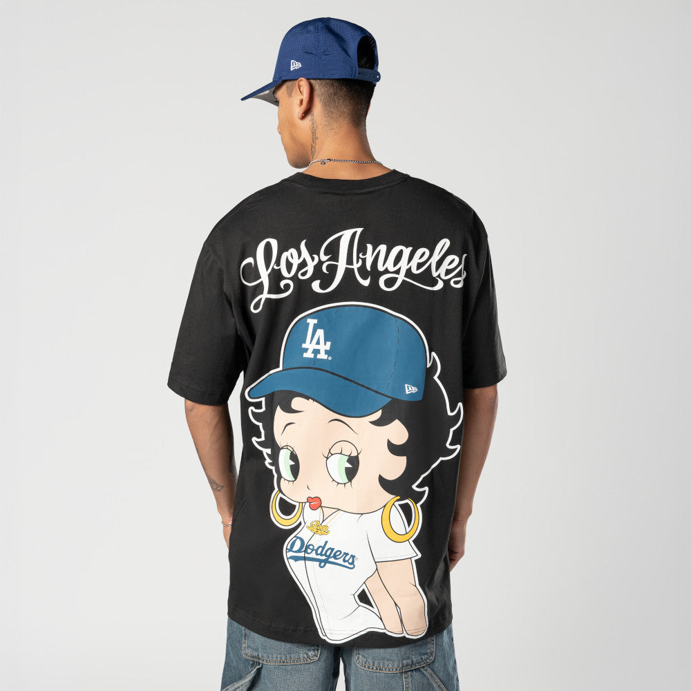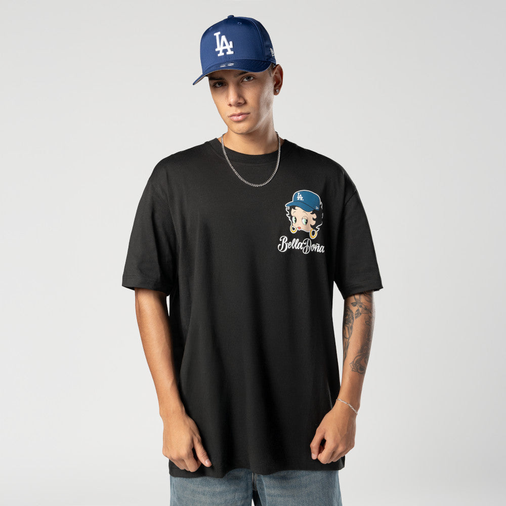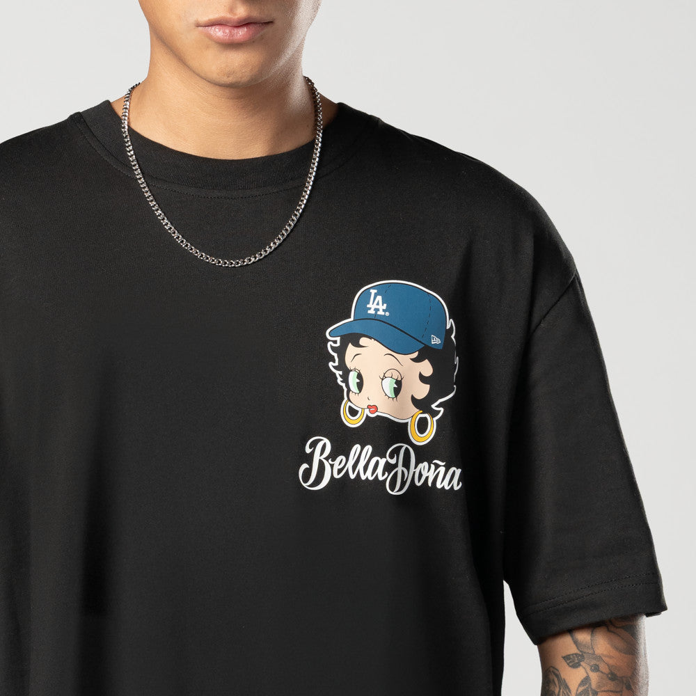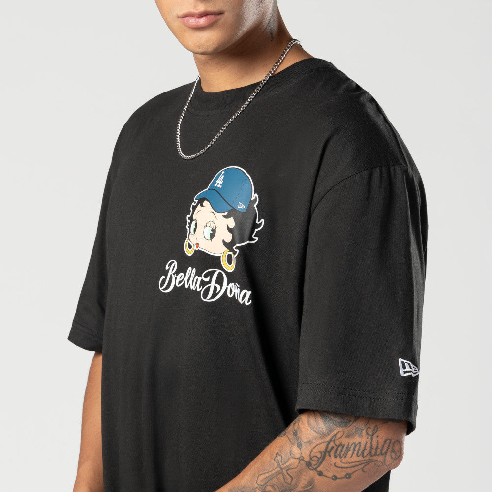 Esta Playera Manga Corta New Era de Los Angeles Dodgers de la colección Bella Doña X Betty Boop X Los Angeles Dodgers presenta un diseño en color negro, Betty Boop junto con el nombre de la marca colaboración Bella Doña en la parte frontal izquierda, el nombre de la ciudad de los Dodgers y Betty Boop en la parte de atrás y el flag de New Era bordado en la manga izquierda. Cómprala ya.