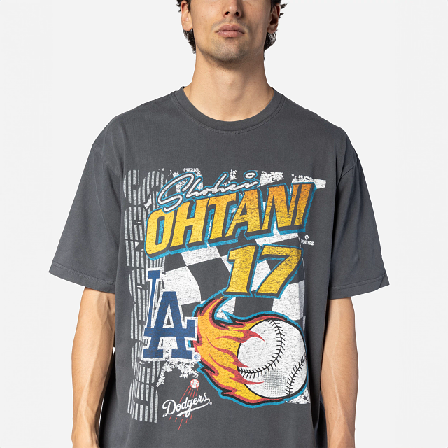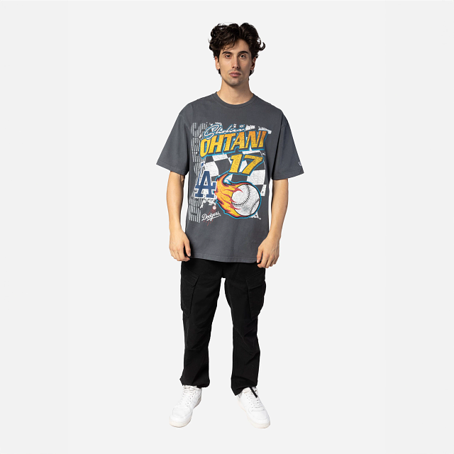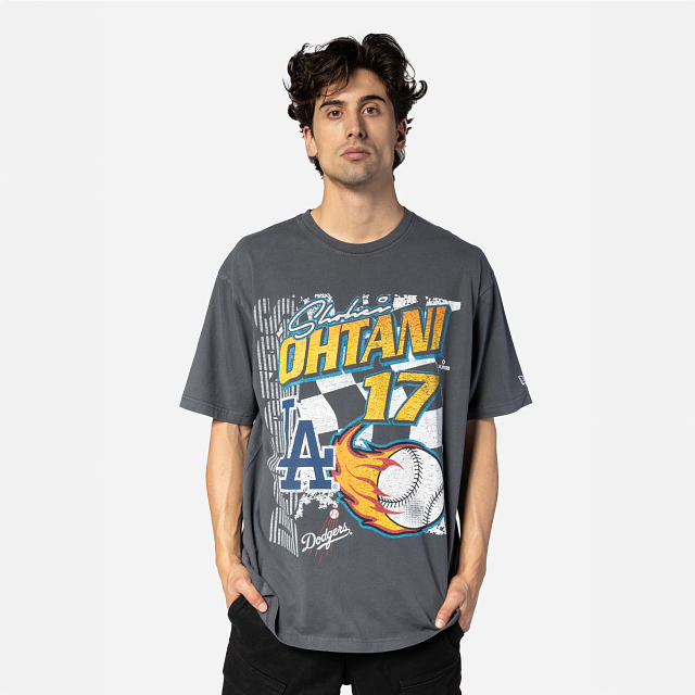 Esta Playera Manga Corta New Era de Los Angeles Dodgers de la colección MLB Rally presenta un diseño gris avejentado con el nombre y número de Ohtani 17, el nombre y logotipo de los Angels, y una bandera a cuadros y una bola de beis con fuego, y el flag de New Era bordado en la manga izquierda. Dale un toque a tu outfit y cómprala ya.