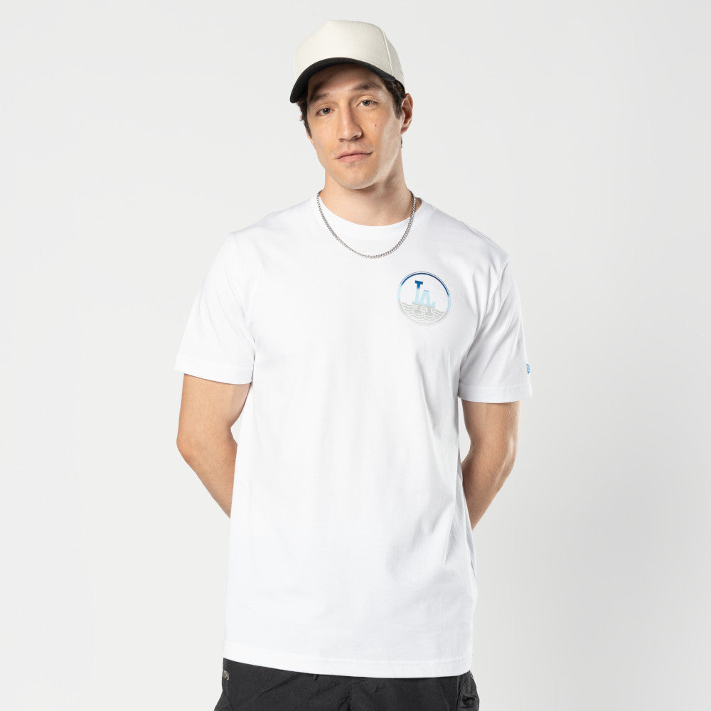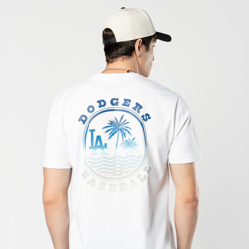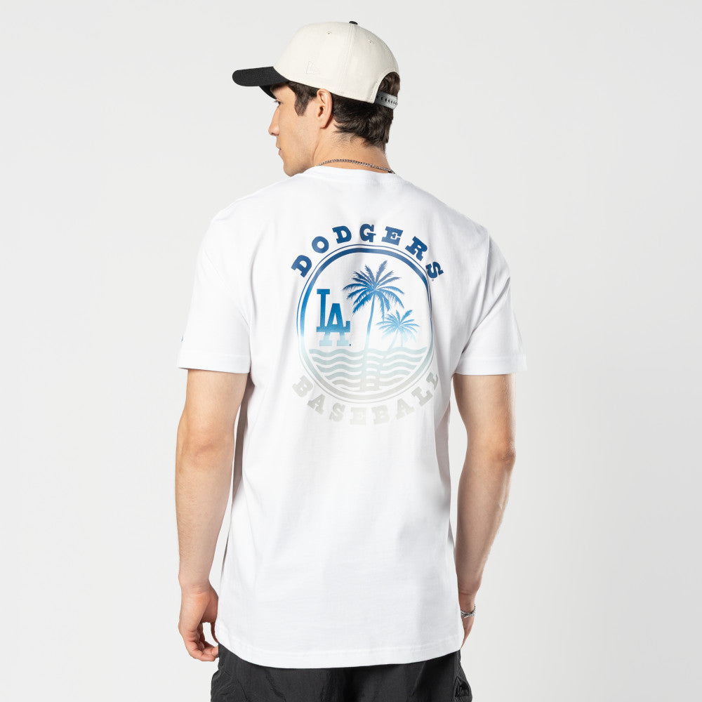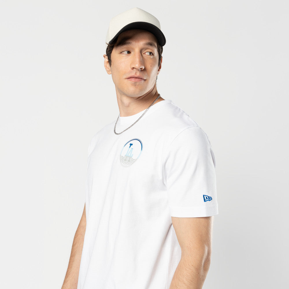 Este Playera Manga Corta New Era de Los Angeles Dodgers de la colección MLB Summer presenta el logotipo de los Dodgers en la parte frontal izquierda, el nombre y logo del equipo junto con unas palmeras y ondas de mar en la parte de atrás, y el flag de New Era bordado en la manga izquierda. Cómprala ya.