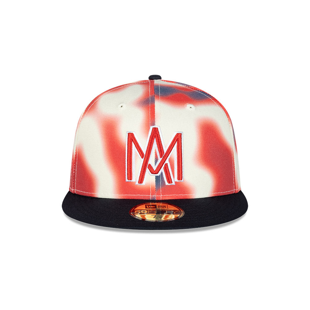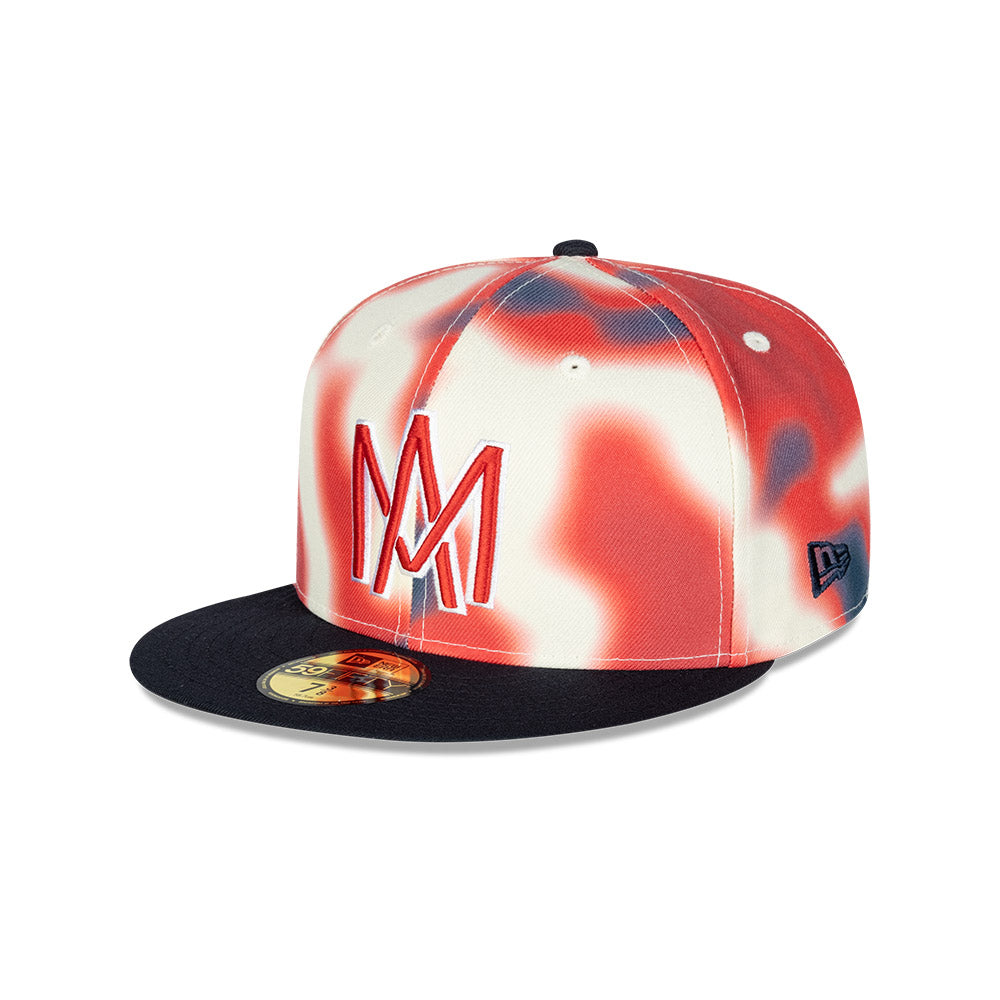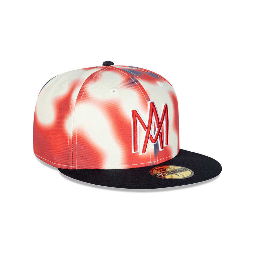 Esta gorra plana New Era 59FIFTY de Los Águilas de Mexicali de la colección LAMP Heatmap presenta un diseño inspirado en un mapa de calor con el logotipo de los Águilas bordado en los paneles frontales, el logo de la LAMP al reverso y el flag de New Era bordado del lado izquierdo. Apoya a tu equipo y cómprala ya.
