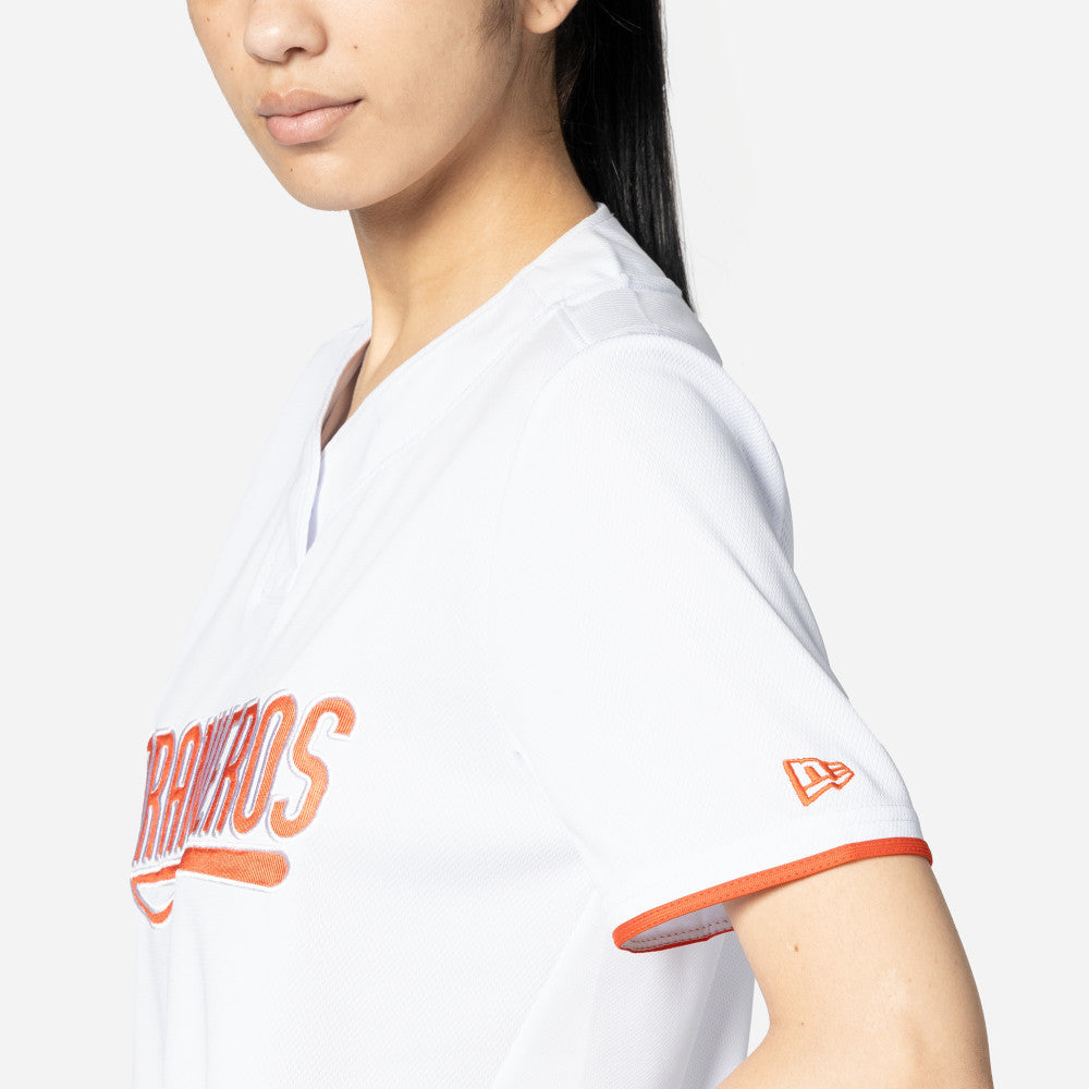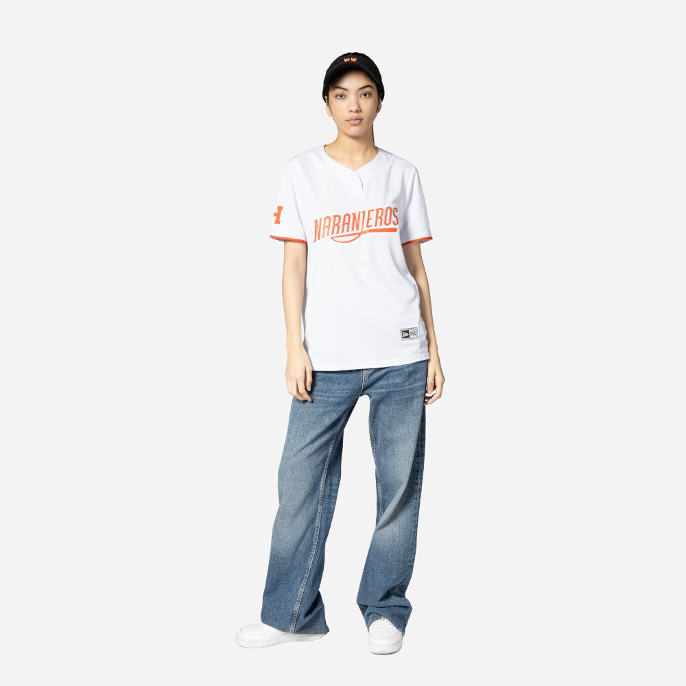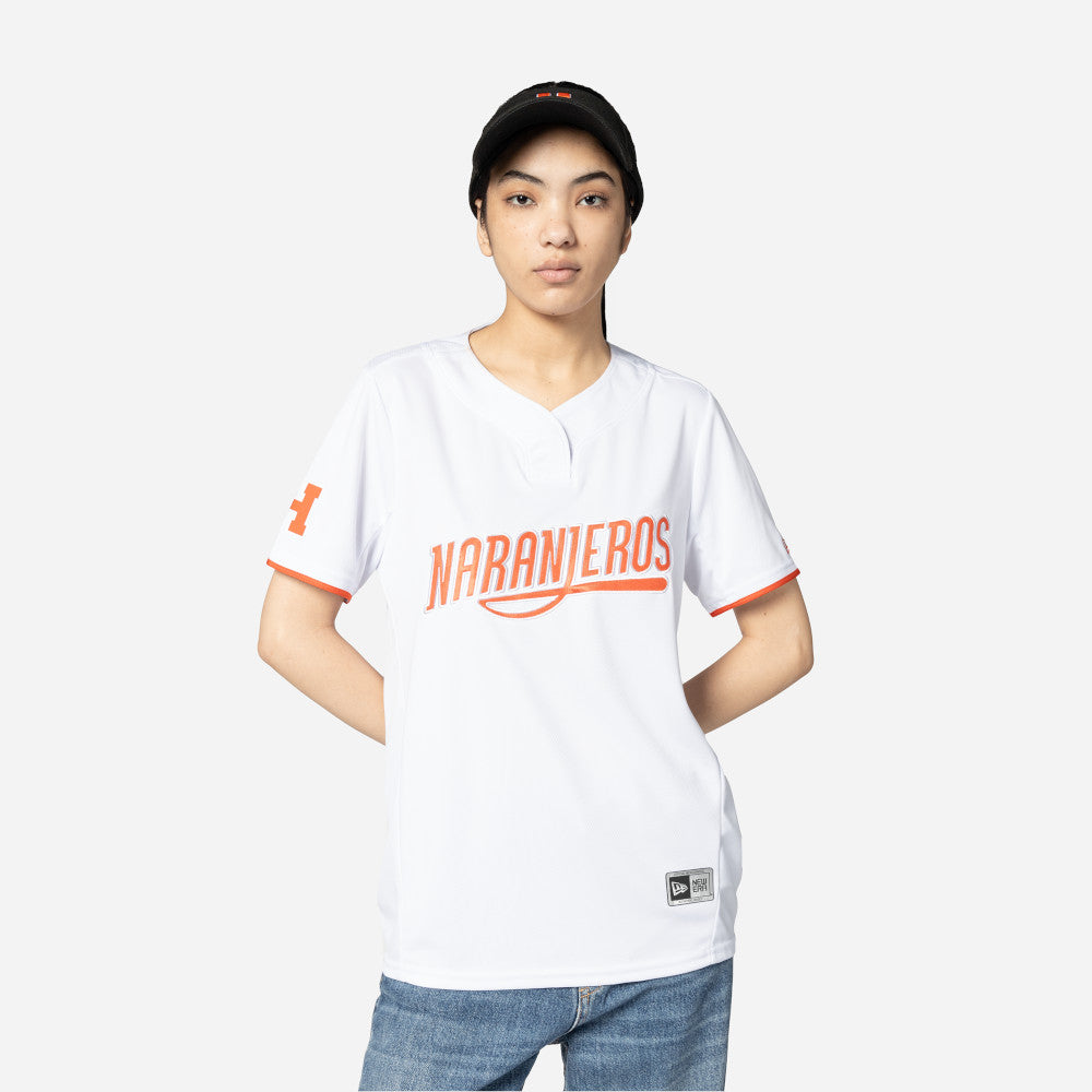 Este Jersey New Era para Mujer de Naranjeros de Hermosillo de la colección LMS Jerseys 2025 presenta un diseño con el nombre de los Naranjeros en la parte frontal, el logo del equipo en la manga derecha, el logo de la LMS en la parte de atrás del cuello y el flag de New Era bordado en la manga izquierda. Apoya a tu equipo y cómpralo ya.