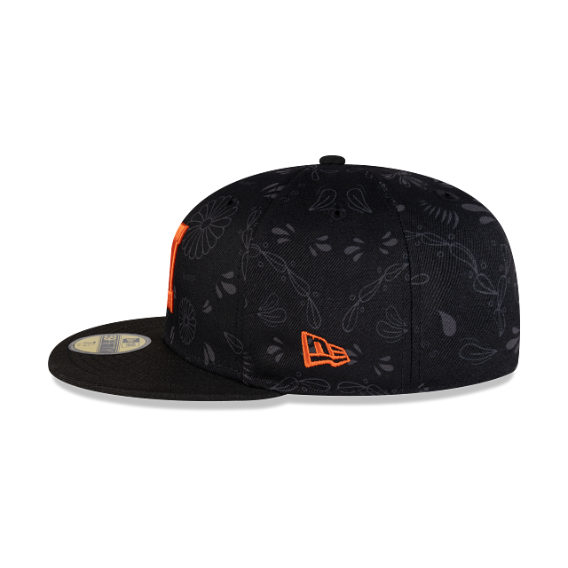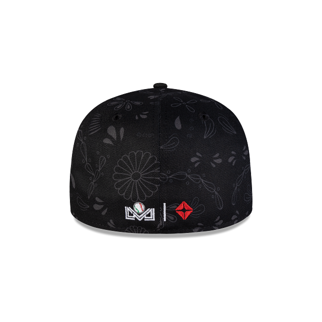 Esta gorra New Era 59FIFTY de los Naranjeros de Hermosillo de la colección LAMP Día de Muertos presenta un diseño con elementos distintivos de la celebración cultural y el logotipo de los Naranjeros bordado en los paneles frontales, el logo de la Liga del Pacífico en la parte trasera y el flag de New Era bordado en el lado izquierdo. Dale un toque a tu outfit esta temporada y cómprala ya