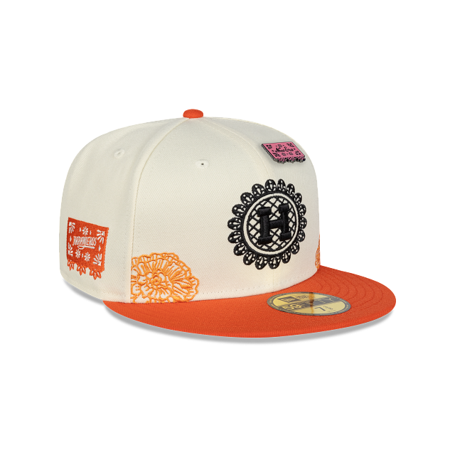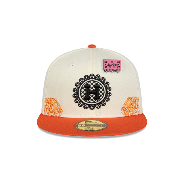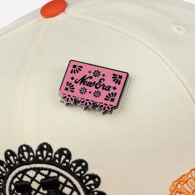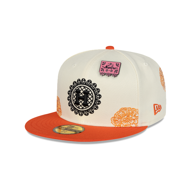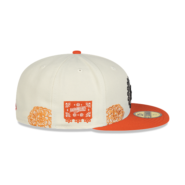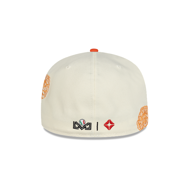 Esta gorra plana New Era 59FIFTY de Naranjeros de Hermosillo de la colección LAMP Día de Muertos presenta un diseño inspirado en la artesanía del papel picado con el logotipo de los Naranjeros bordado en los paneles frontales, detalles de flores de cempasúchil en la corona, el logo de la LAMP al reverso, un pin en forma de papel picado y el flag de New Era bordado del lado izquierdo. Cómprala ya.