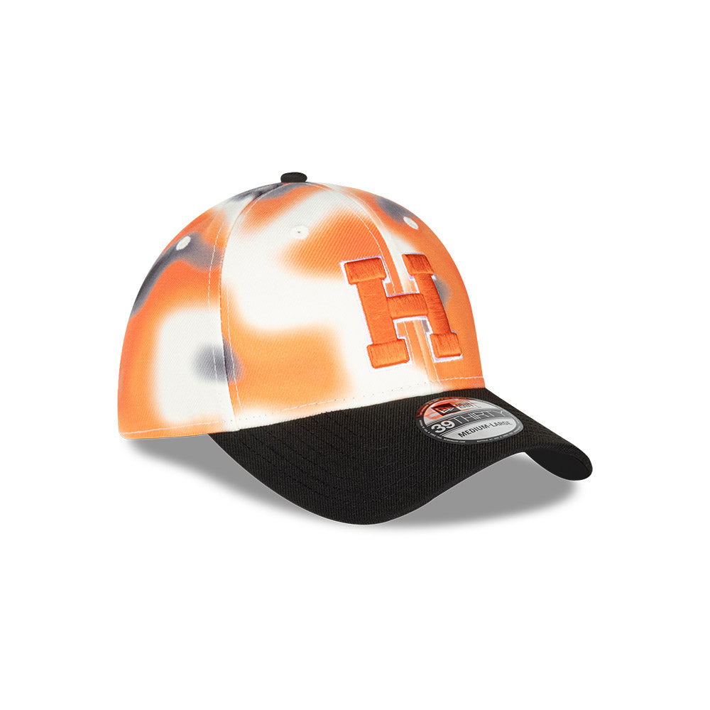 Esta gorra curva New Era 39THIRTY de Naranjeros de Hermosillo de la colección LAMP Heatmap presenta un diseño inspirado en un mapa de calor con el logotipo de los Naranjeros bordado en los paneles frontales, el logo de la LAMP al reverso y el flag de New Era bordado del lado izquierdo. Apoya a tu equipo y cómprala ya.