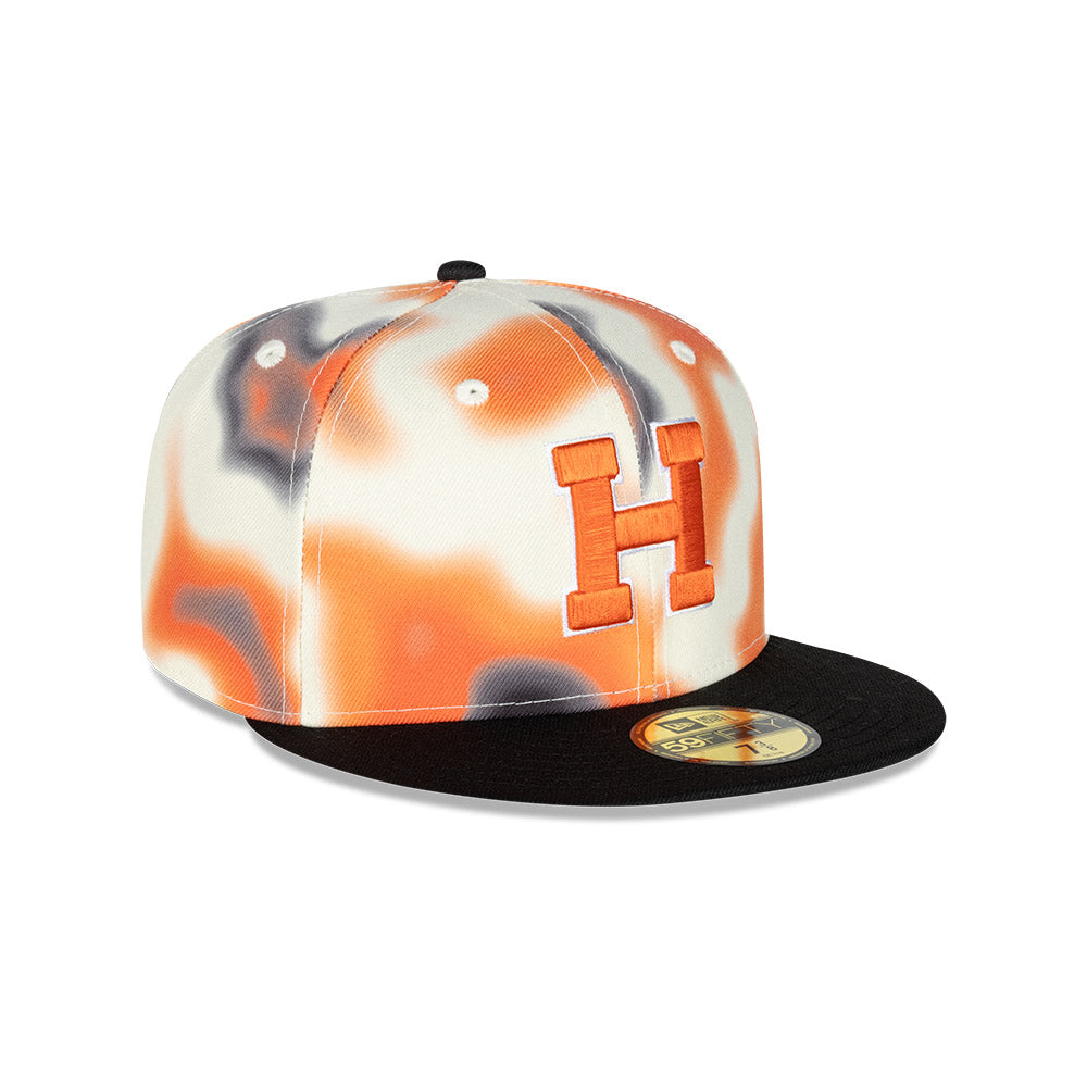 Esta gorra plana New Era 59FIFTY de Naranjeros de Hermosillo de la colección LAMP Heatmap presenta un diseño inspirado en un mapa de calor con el logotipo de los Naranjeros bordado en los paneles frontales, el logo de la LAMP al reverso y el flag de New Era bordado del lado izquierdo. Apoya a tu equipo y cómprala ya.