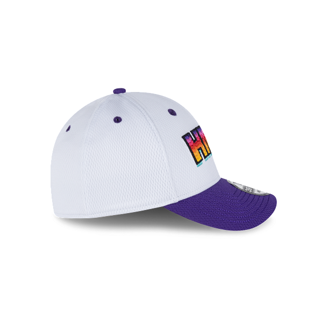 Esta gorra New Era 39THIRTY de los Naranjeros de Hermosillo de la colección LAMP Iconic presenta un diseño two tone con la corona blanca con el logotipo de la ciudad de los Naranjeros bordado en los paneles frontales, la visera morada con el año de fundación, el nombre al reverso y el flag de New Era bordado en el lado izquierdo. Apoya a tu equipo y cómprala ya.