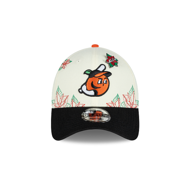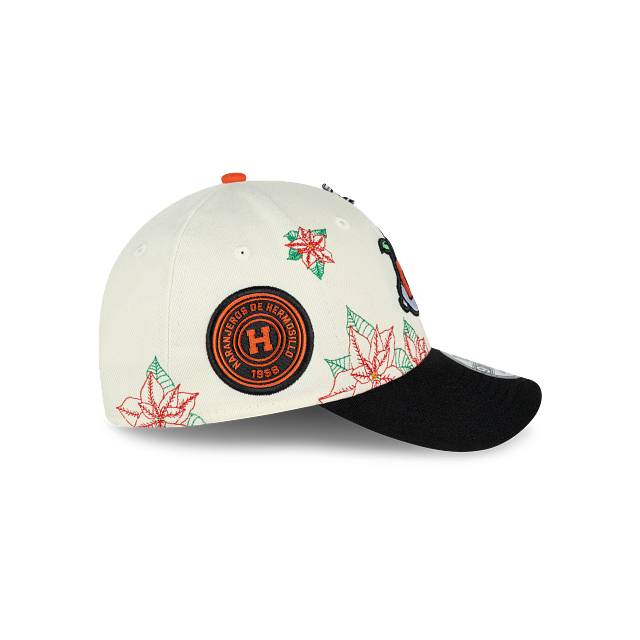 Esta gorra curva New Era 9FORTY de Naranjeros de Hermosillo de la colección LAMP Nochebuena presenta un diseño con el logotipo de los Naranjeros bordado en los paneles frontales junto con un pin en forma de flor de nochebuena, hojas de nochebuena en toda la corona, un parche representativo del equipo del lado derecho y el flag de New Era bordado del lado izquierdo. Cómprala ya.