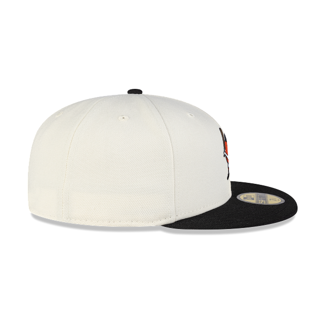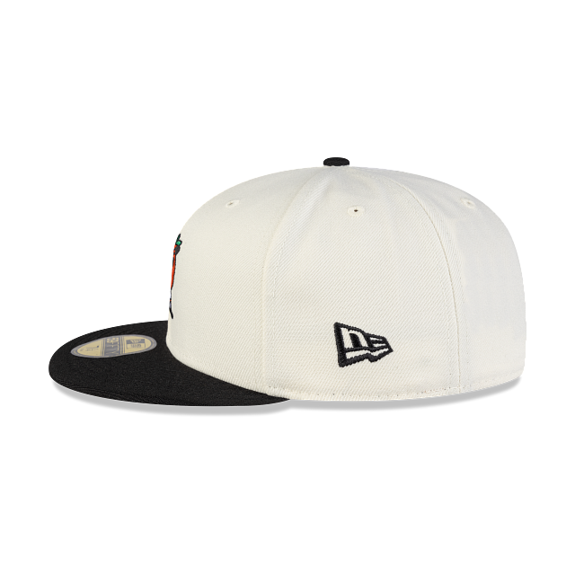 Esta gorra New Era 59FIFTY de Naranjeros de Hermosillo de la colección LAMP Retro presenta un diseño retro two tone con el logotipo de los Naranjeros bordado en los paneles frontales, el emblema de la Liga Arco Mexicana del Pacífico al reverso y el flag de New Era bordado en el lado izquierdo. Apoya a tu equipo y cómprala ya.