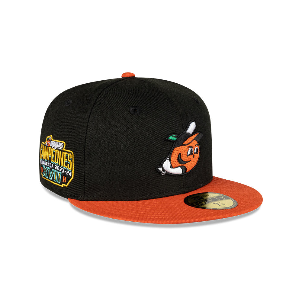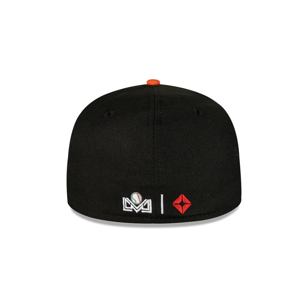 Esta gorra plana New Era 59FIFTY de Naranjeros de Hermosillo de la colección LAMP Game Caps 2024 presenta un diseño con la mascota de los Naranjeros bordado en los paneles frontales, un parche de campeones del lado derecho, el logo de la LAMP al reverso y el flag de New Era bordado del lado izquierdo. Cómprala ya.