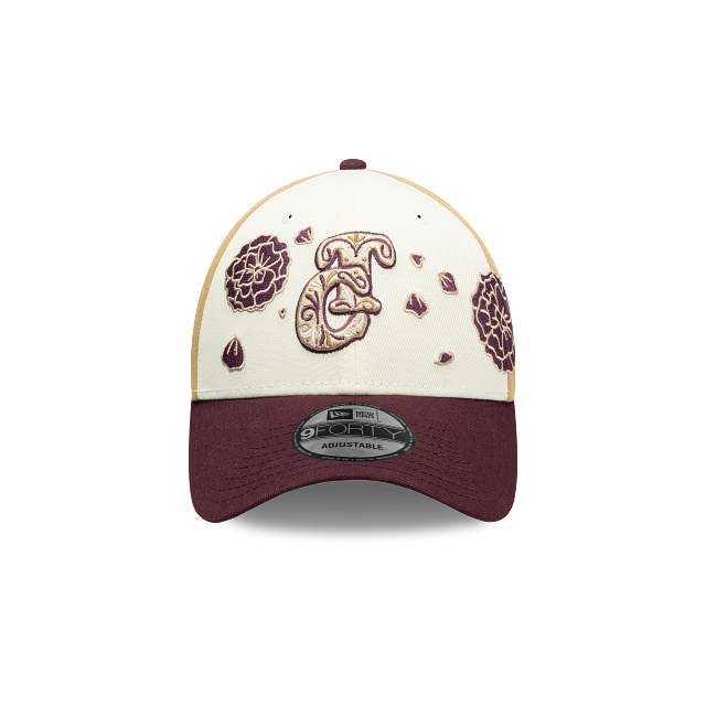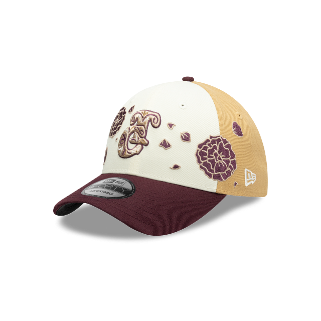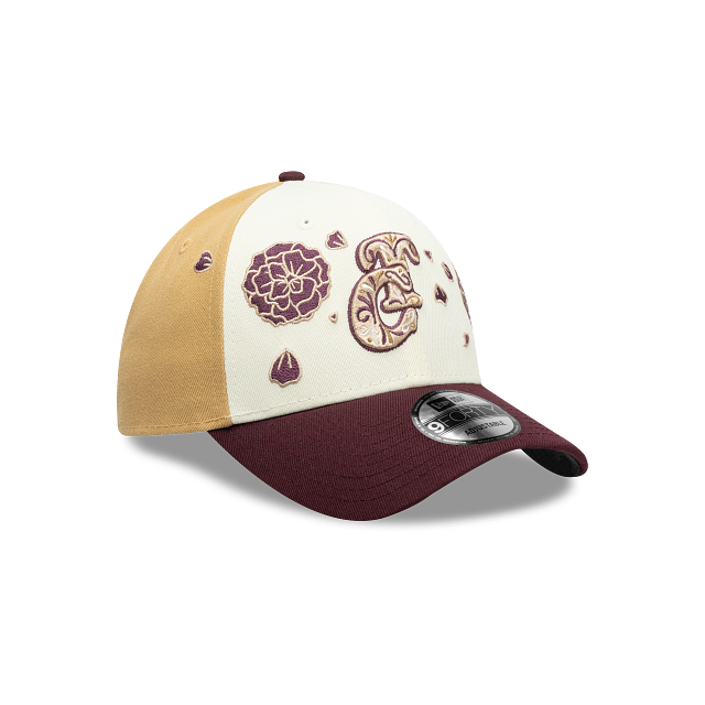 Esta gorra curva New Era 9FORTY de Tomateros de Culiacán de la colección LAMP Game Caps presenta un diseño inspirado en el Día de Muertos con flores de cempasúchil, el logotipo de los Tomateros bordado en los paneles frontales, el logo de la LAMP en la parte de atrás y el flag de New Era bordado del lado izquierdo. Cómprala ya.