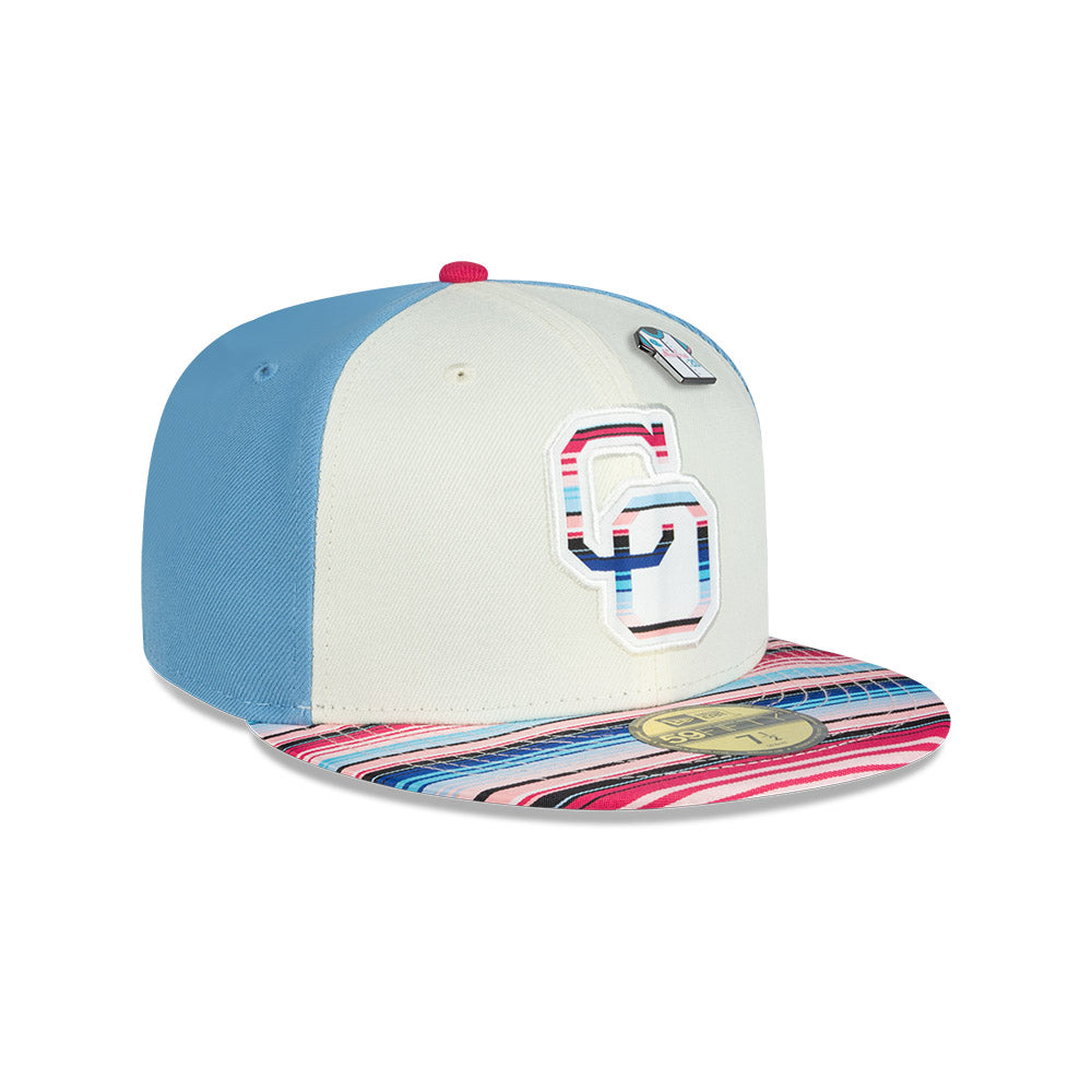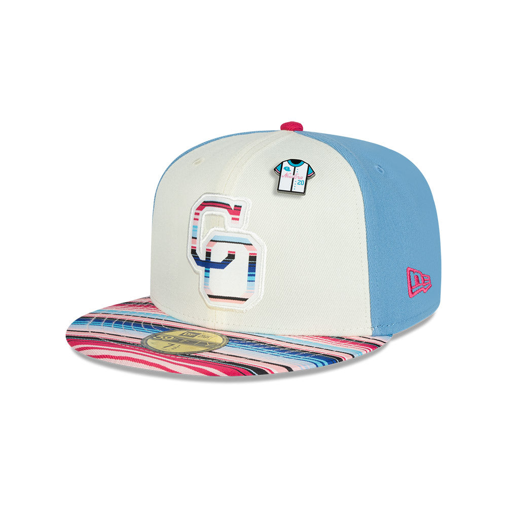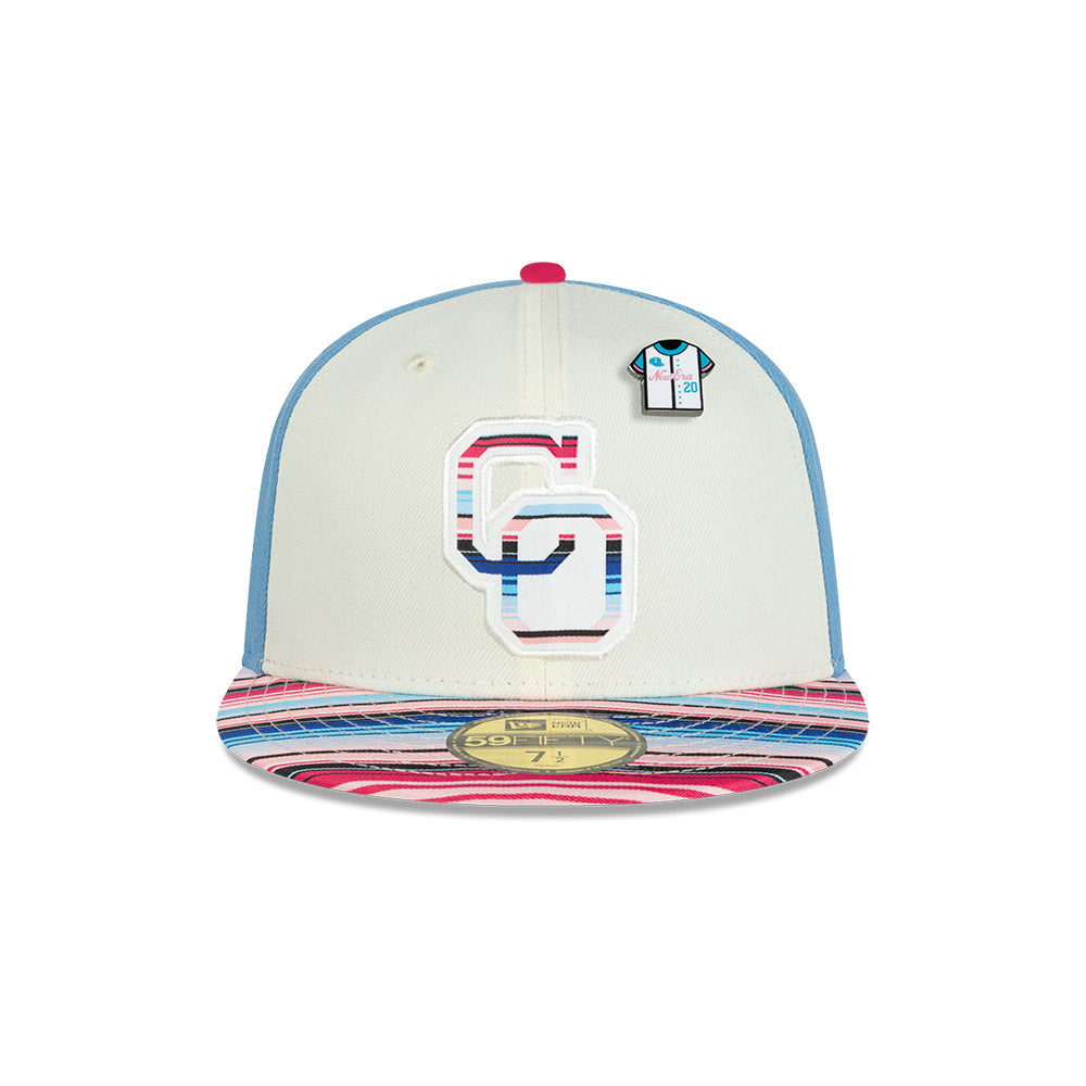 Esta gorra plana New Era 59FIFTY de Yaquis de Obregón de la colección LAMP Sarape presenta el logotipo de los Yaquis bordado en los paneles frontales, el visor con un diseño inspirado en los colores y patrones tradicionales del sarape, el nombre del equipo al reverso, un pin en forma de Jersey y el flag de New Era bordado del lado izquierdo. Cómprala ya.